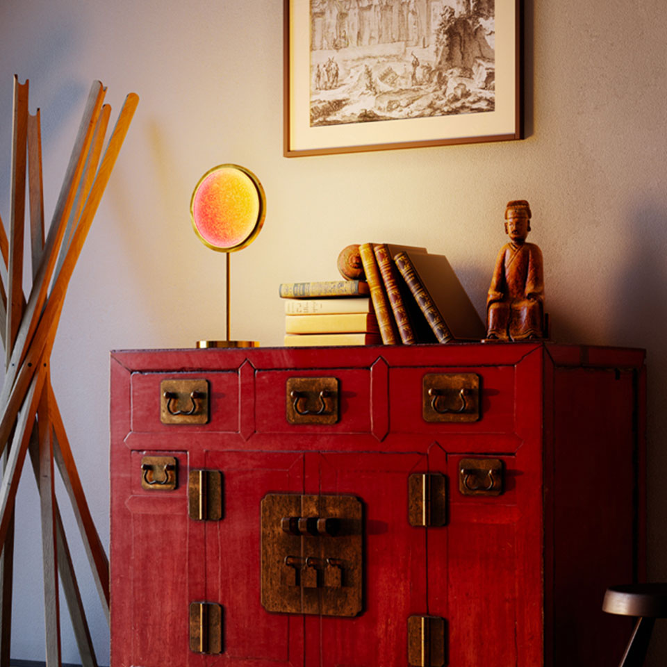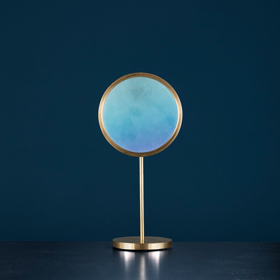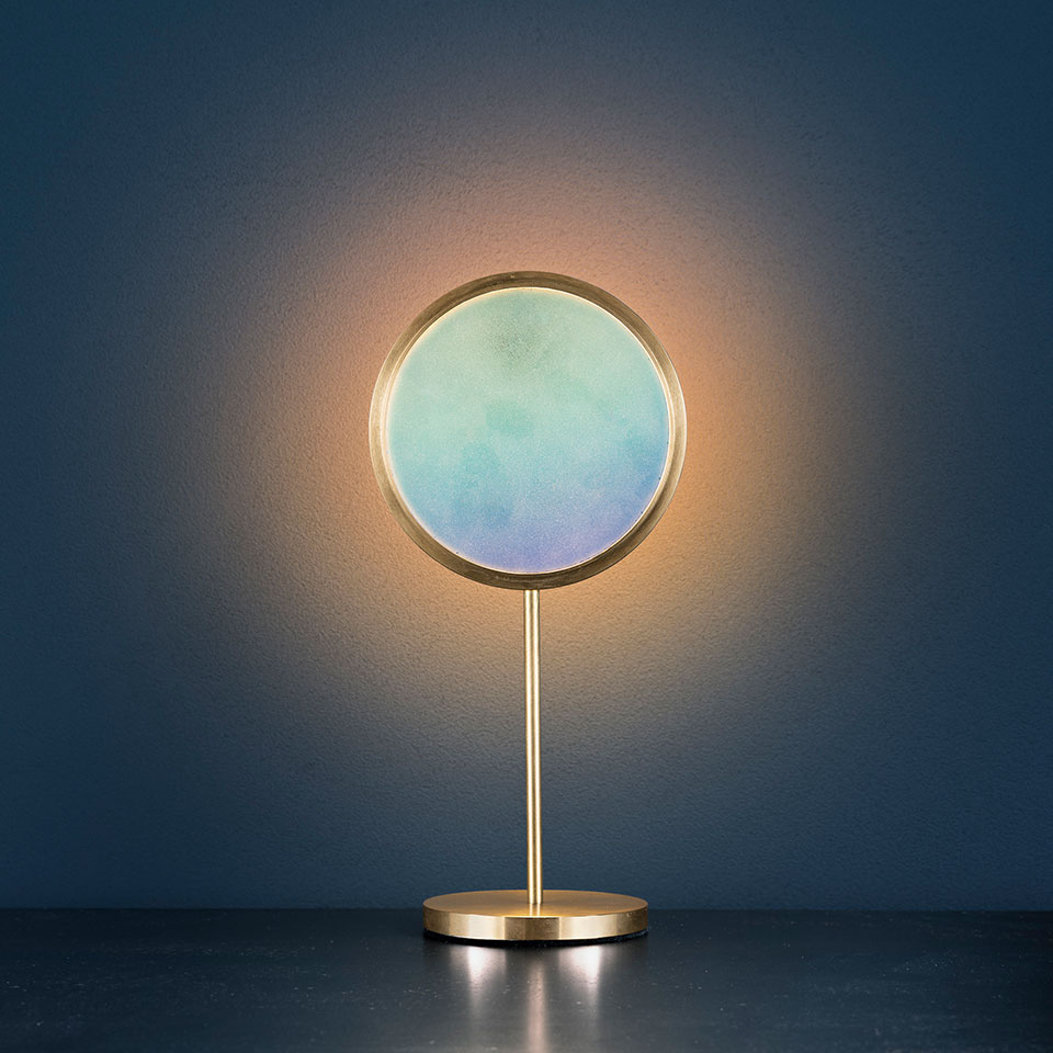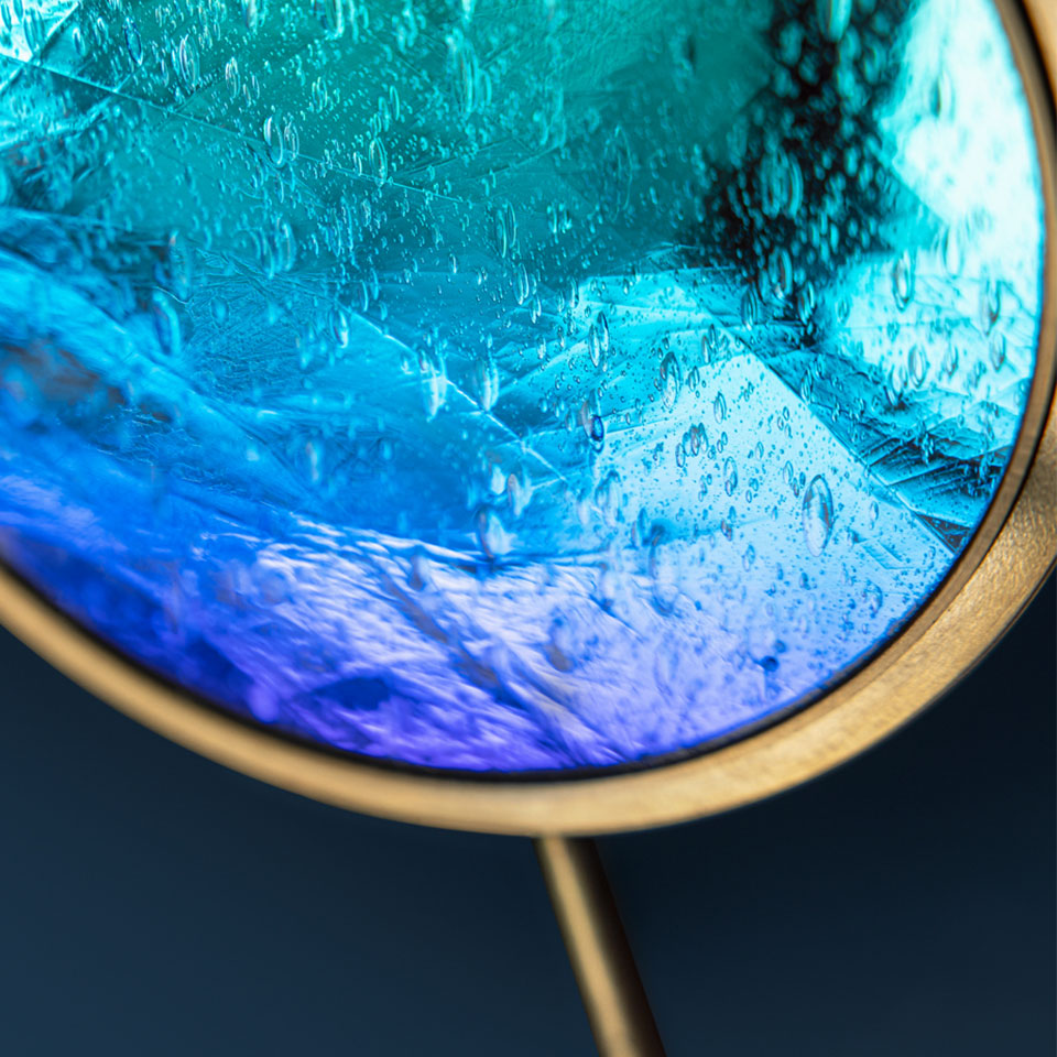 황동조 안에 양면이 다른 무지개 빛 유리가 매력적인 조명