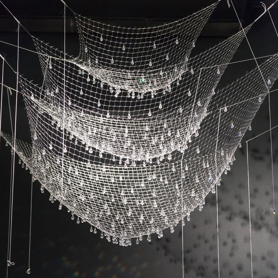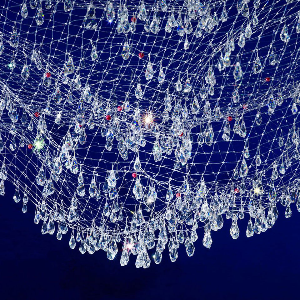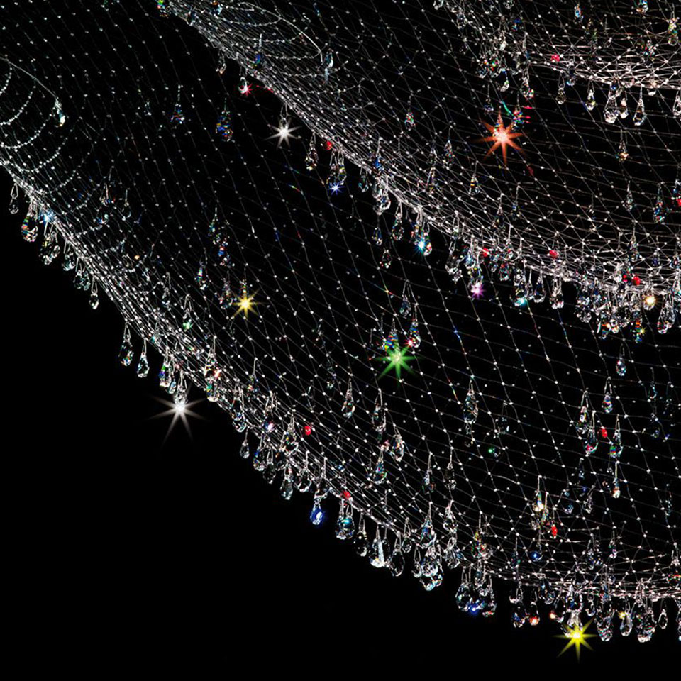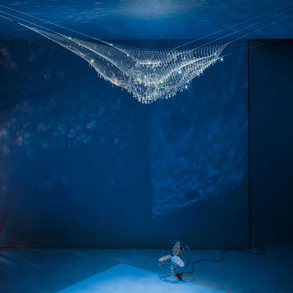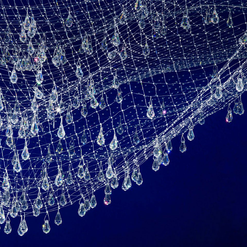 방금 물에서 건져 올린 그물에 물방울들이 햇빛에 반짝이는 모습을 떠오르게 하는 조명